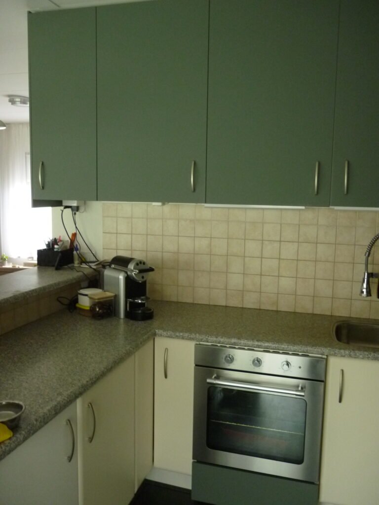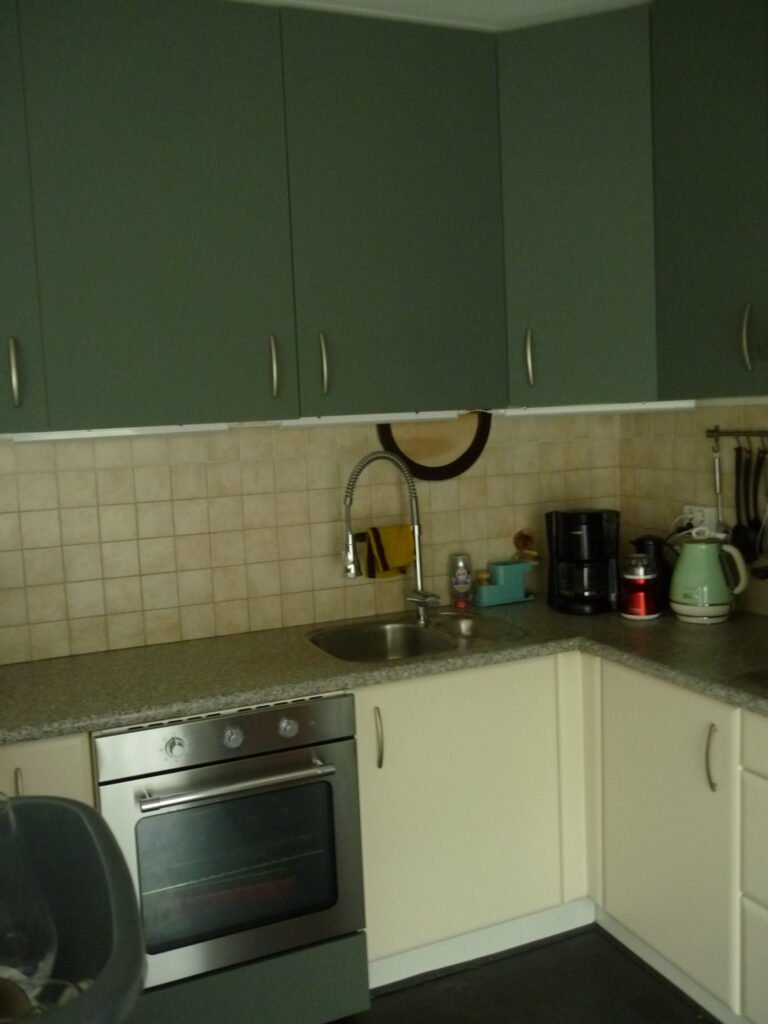 In eerste instantie hebben we de bestaande keuken een upgrade gegeven door IKEA kastjes toe te voegen, de toenmalig keuken had nauwelijks bovenkasten.