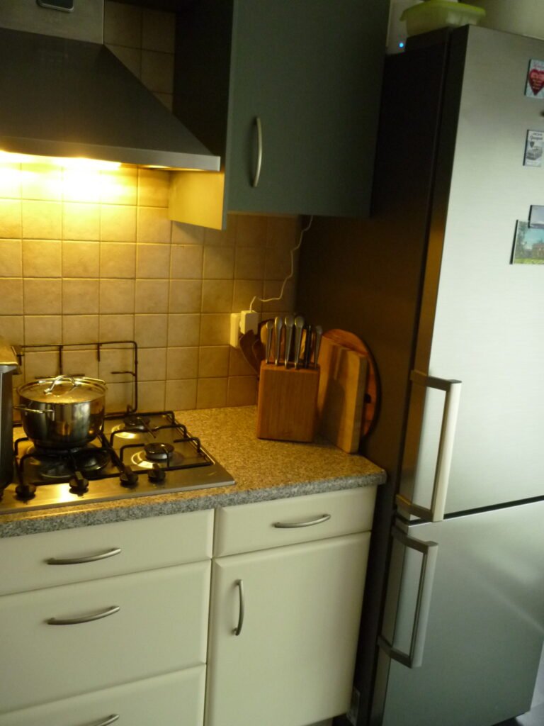 De keuken uit 2000 had een elektrische kookplaat. Aangezien we gewend waren te koken op gas is bij onze renovatie de elektrische kookplaat vervangen door een gaskookplaat. Bij de aanschaf van de nieuwe keuken, hebben we gekozen voor een inductie kookplaat.